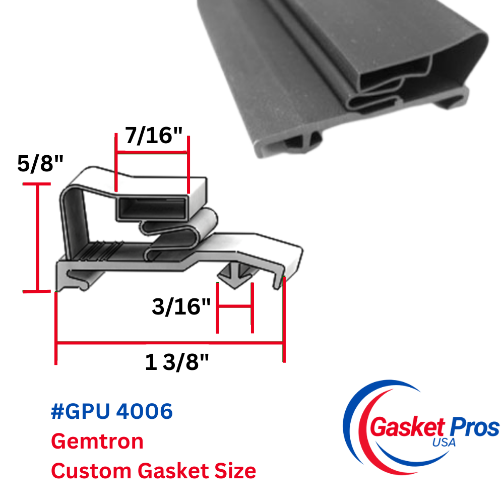 The Gemtron Gasket Custom is a high-quality replacement part for commercial cooler and freezer systems. It features attributes such as: 4006 Gemtron Custom Gasket. This product is ideal for restaurants, grocery stores, and cold storage applications requiring reliable hardware.